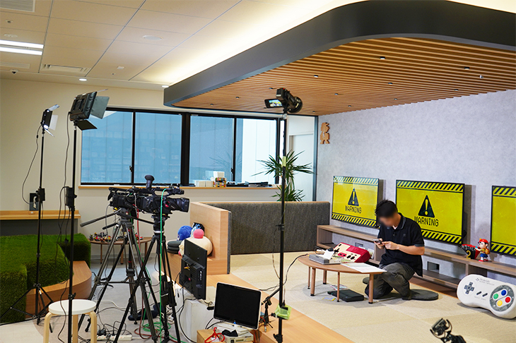 周りにたくさんのカメラやライトが置かれ、撮影スタジオに大変身です。